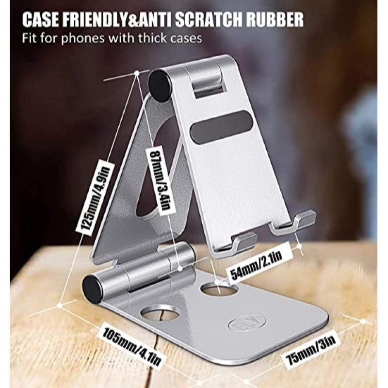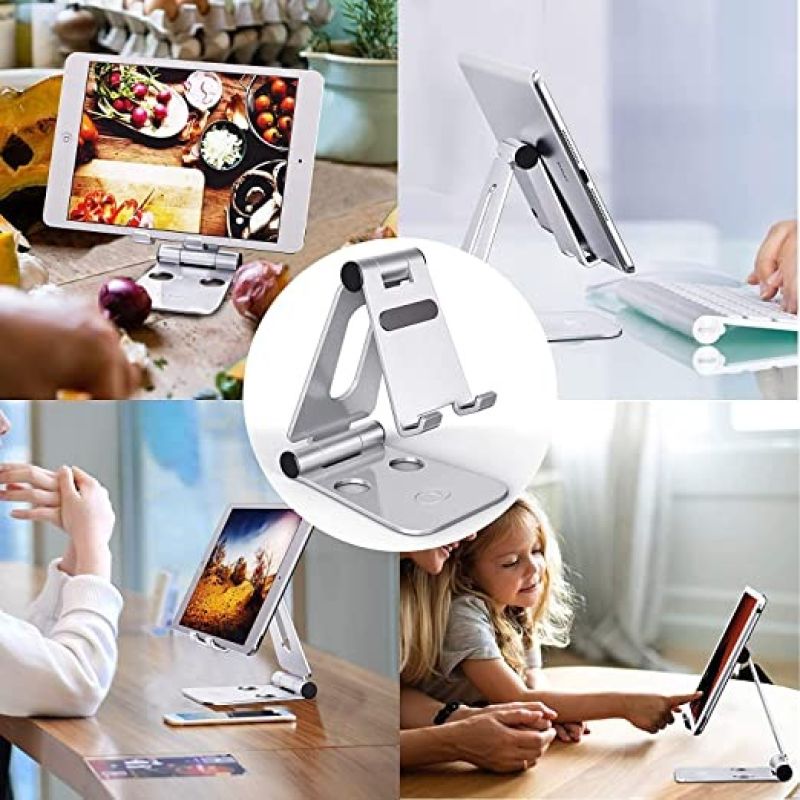 ELV الألومنيوم قابل للتعديل الهاتف المحمول قابل للطي حامل حامل قفص الاتهام جبل لجميع الهواتف الذكية, علامات التبويب, كيندل, باد (ضوء القمر الفضي)
