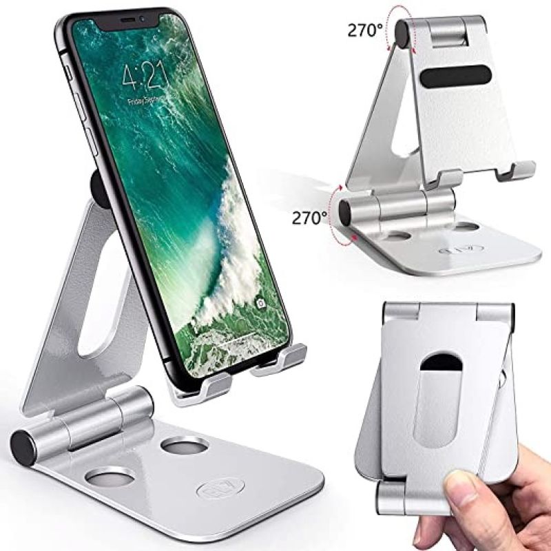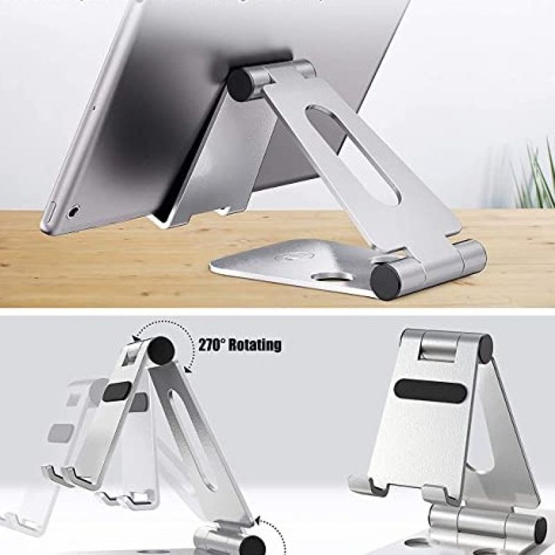 ELV الألومنيوم قابل للتعديل الهاتف المحمول قابل للطي حامل حامل قفص الاتهام جبل لجميع الهواتف الذكية, علامات التبويب, كيندل, باد (ضوء القمر الفضي)