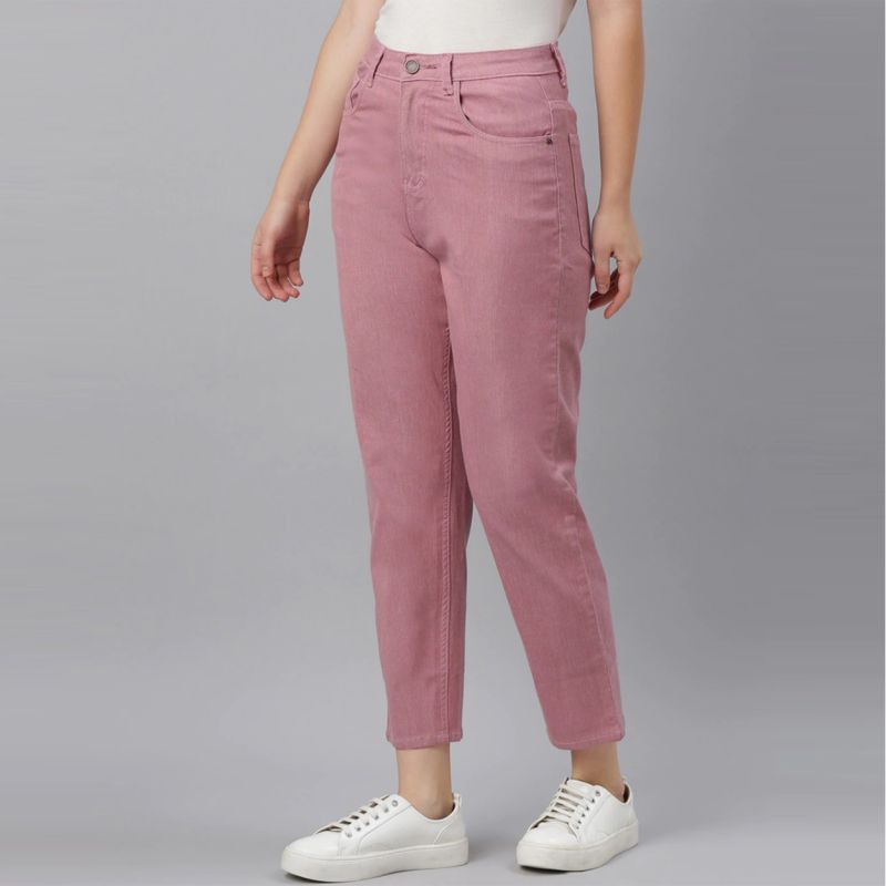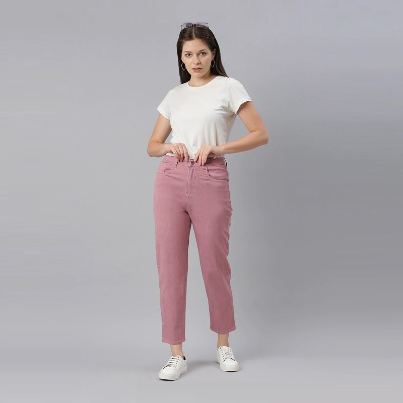 المرأة الوردي استرخاء تناسب عالية الارتفاع قابلة للتمدد المحاصيل الجينز