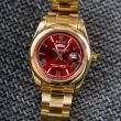 This Oyster Perpetual DAY-DATE 40 in 18 CT yellow gold with a red dial, fluted bezel and a president bracelet.