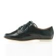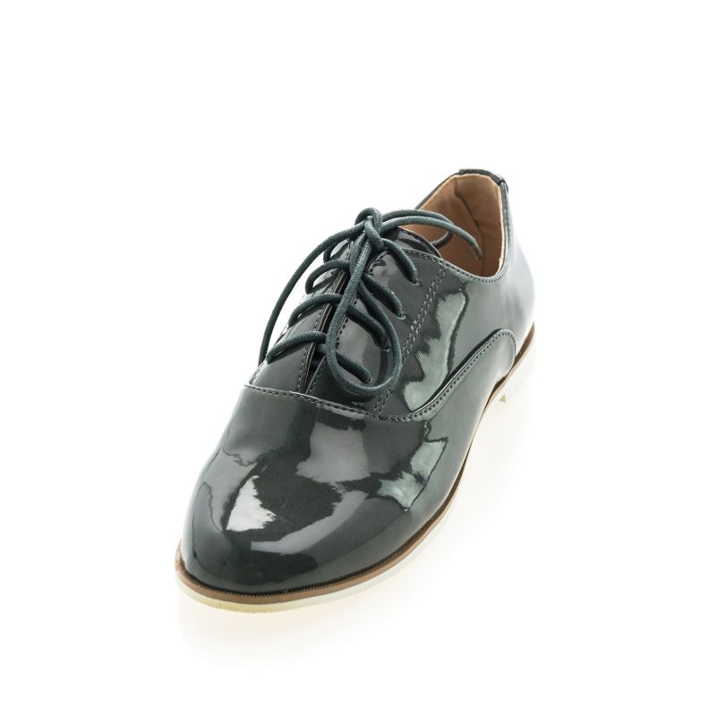 A pair of black solid round toe formal derbys with regular styling has a lace-up closure