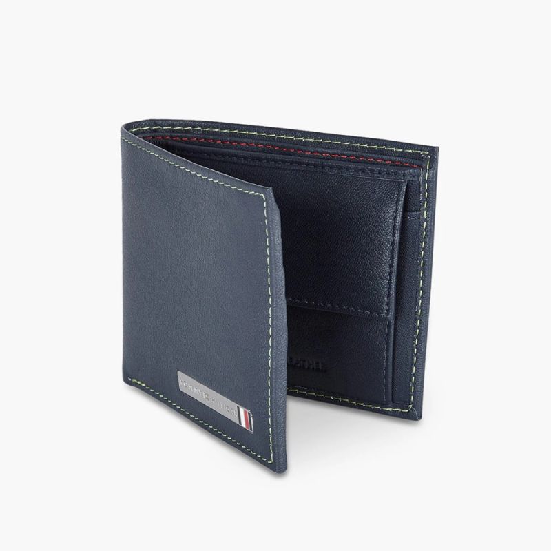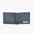 Navy Blue solid two fold wallet 2 main compartments 4 card holders, 2 slip pockets, has a flap coin pocket