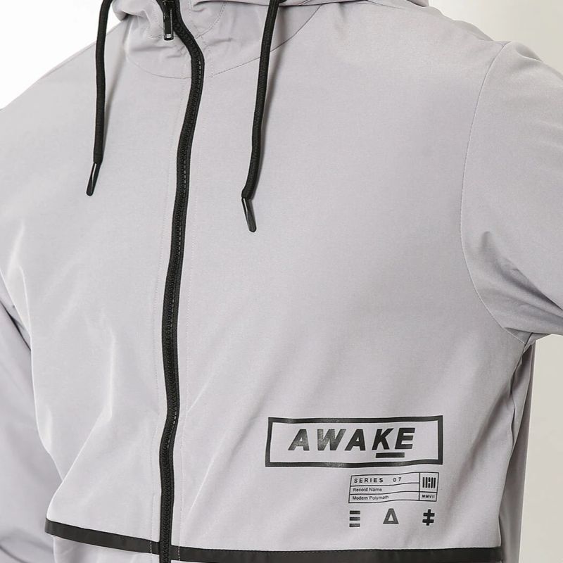 Grey solid open front jacket, has a hooded, 2 pockets ,has a zip closure, long sleeves, straight hemline, polyester lining.