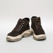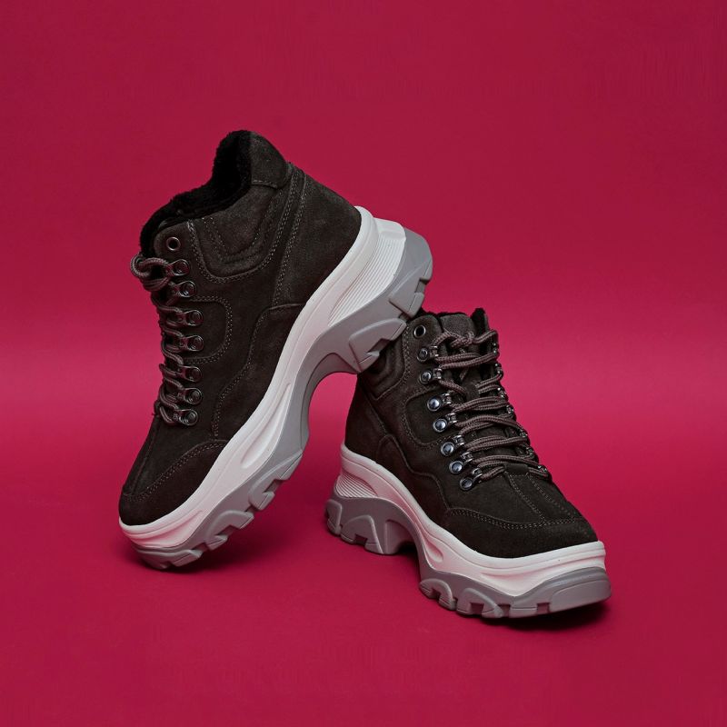 A pair of Black heeled boots ,has regular ankle and lace-ups