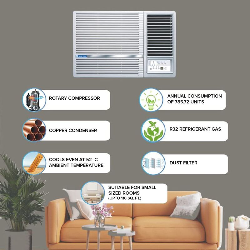 • Item Dimensions & Weight : Window AC - 66*66*43cm (w x d x h), 48 Kg