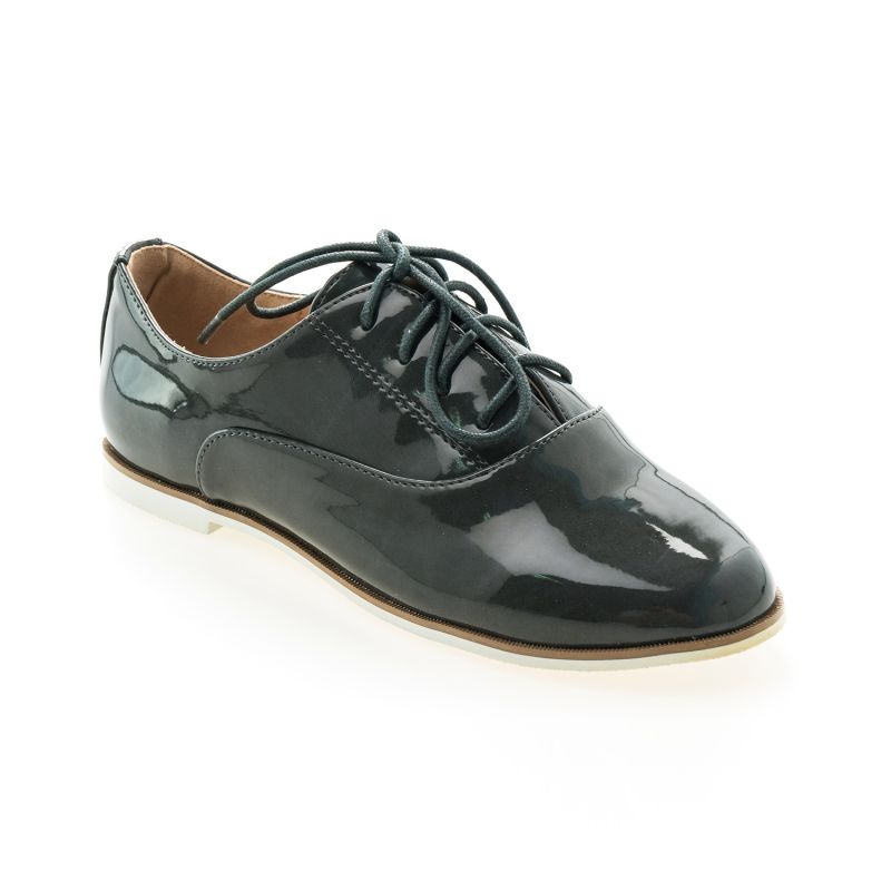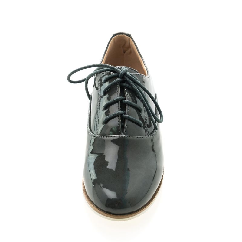 A pair of black solid round toe formal derbys with regular styling has a lace-up closure
