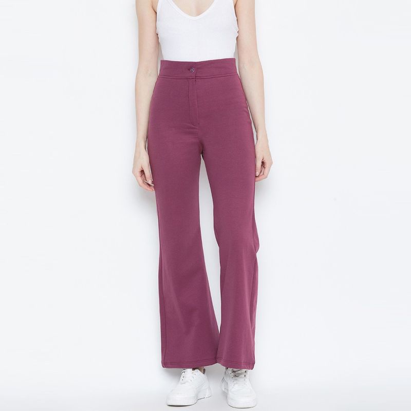 Women Pink High-Rise Flared Trousers